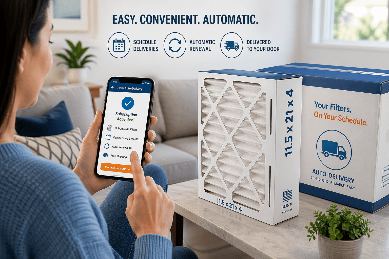 That gap between remembering and replacing is where the problems start. A neglected 11.5x21x4 drags on the blower motor, pushes up the power bill, and sends every breath in the house through filter media that stopped doing its job weeks ago. Auto-delivery exists to close the gap.